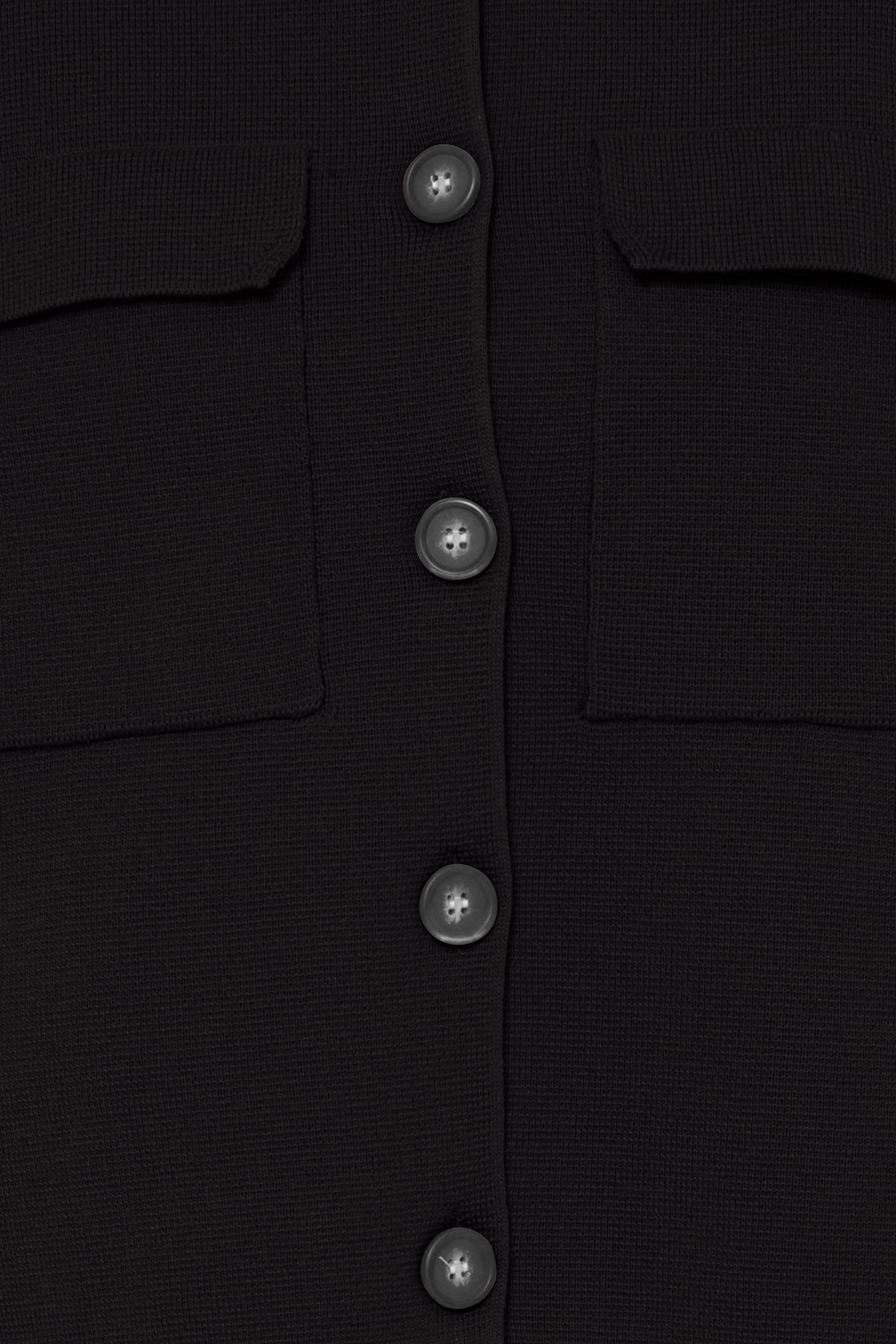 Black knitted cardigan/jacket by Fransa with button fastening, collar and 2 patch pockets to the front.