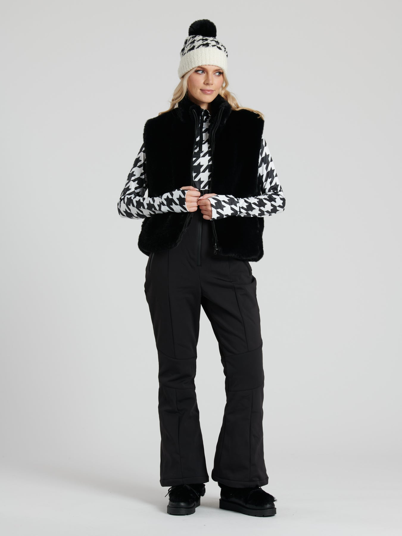 Gorgeously super soft faux fur gilet in black featuring zip fastening, pockets and elasticated cord within hem with toggle so you can tighten it if you would like it tighter around the hem. Lined.