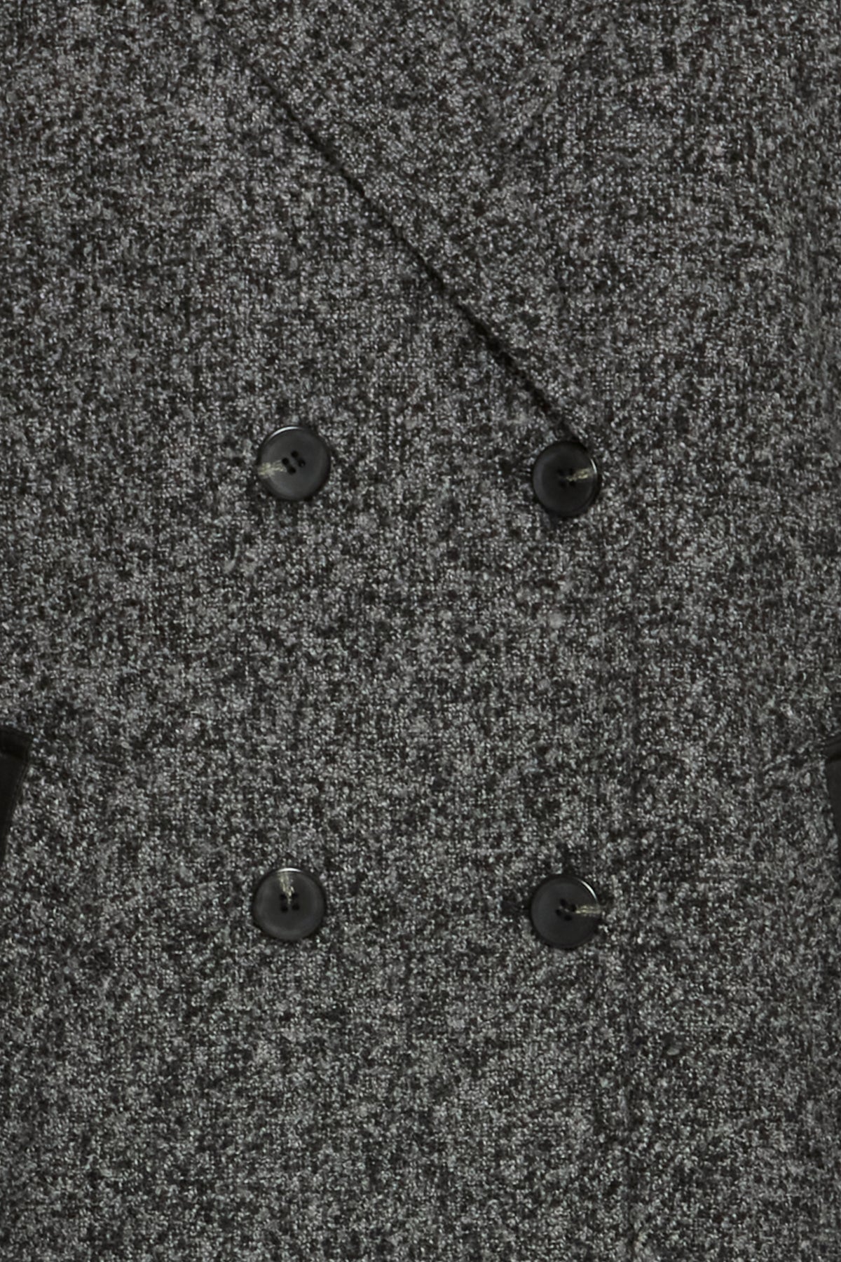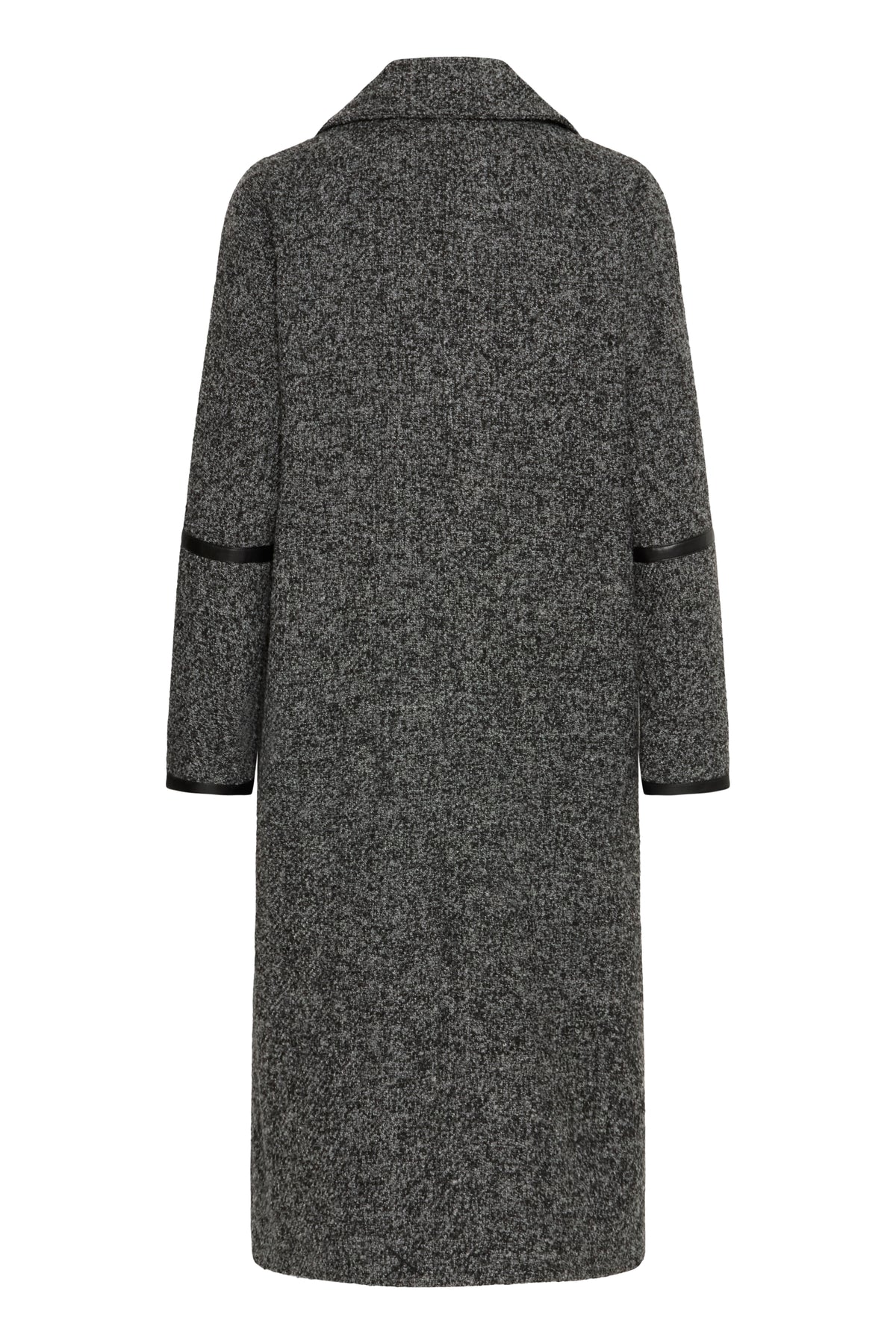 Gorgeous grey boucle coat with faux leather trim detail, button fastening and pockets. Lined.