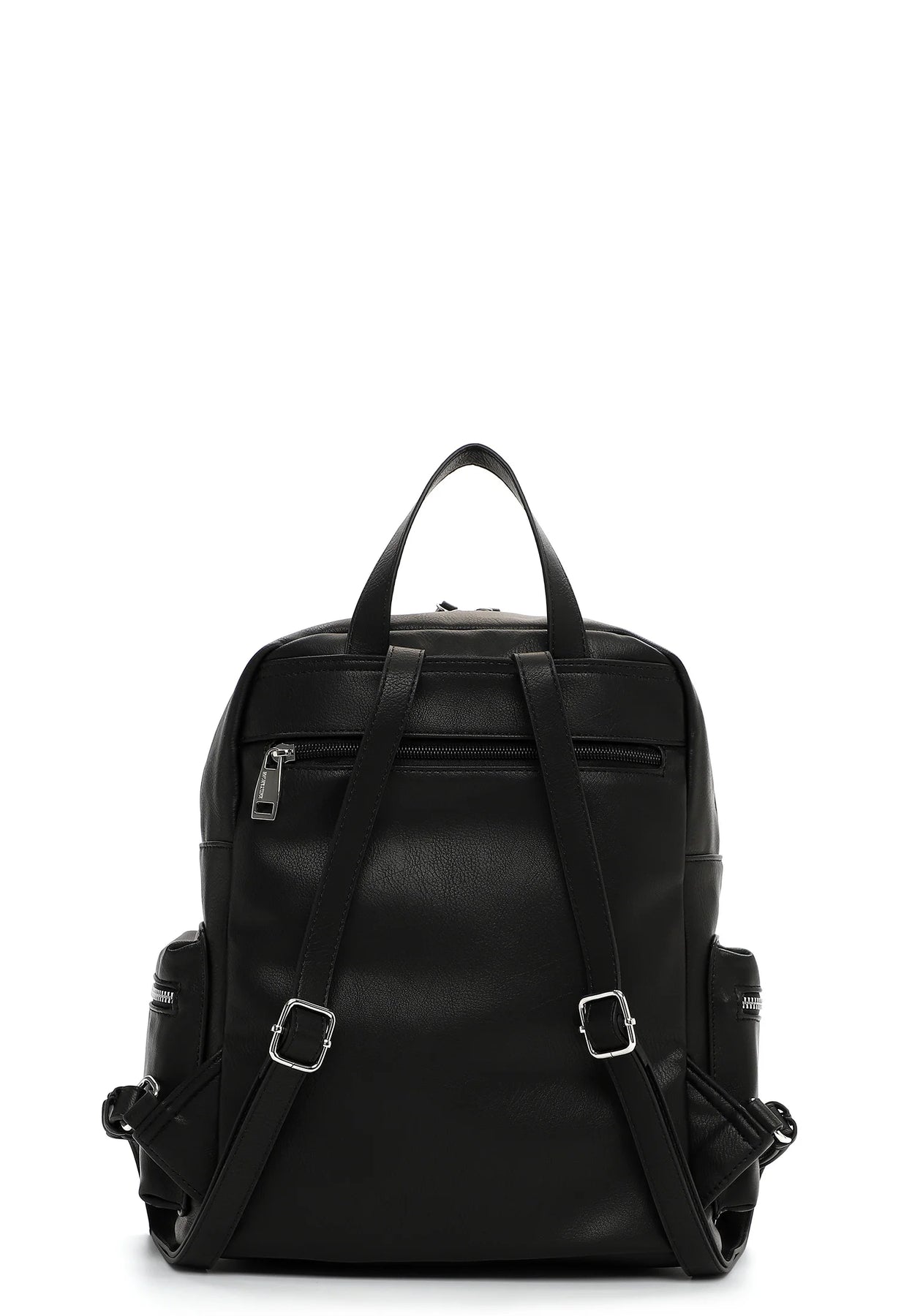 Stay organised and stylish with this sleek faux leather backpack. Crafted from a high quality vegan leather, it offers a smooth texture with a modern edge. The design features multiple zipped compartments including a spacious main section and several exterior zipped pockets - perfect for keeping essentials secure and easy to reach. Finished with silver-tone zips and long faux leather pulls for a chic touch, this is ideal for everyday use whether that be work, travel or leisure.