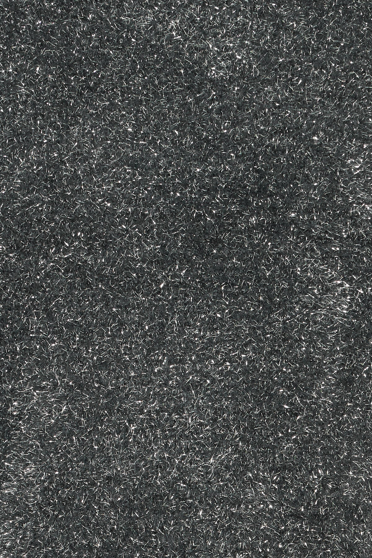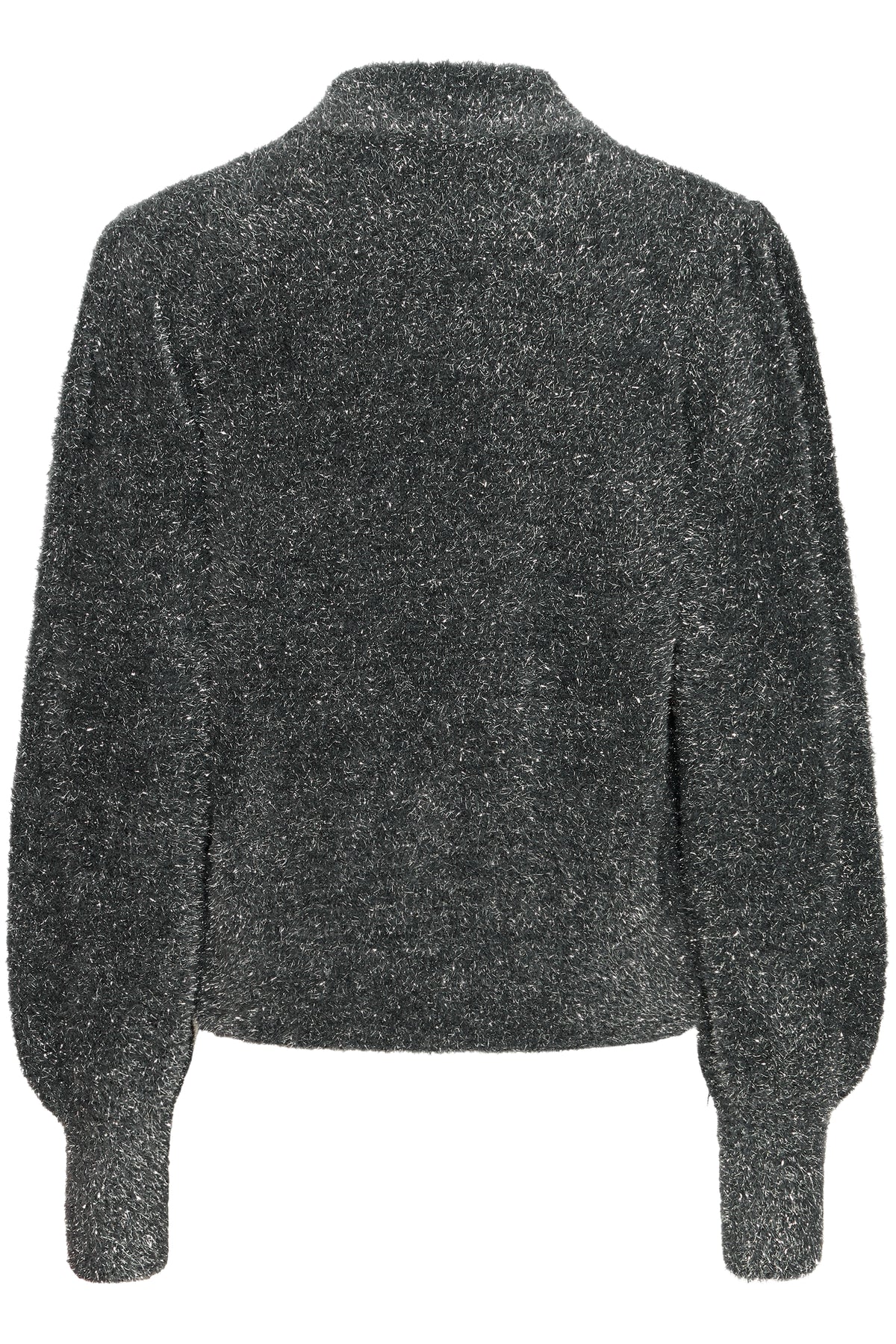 Grey fluffy jumper with sparkly silver thread throughout, high neck and long sleeves.