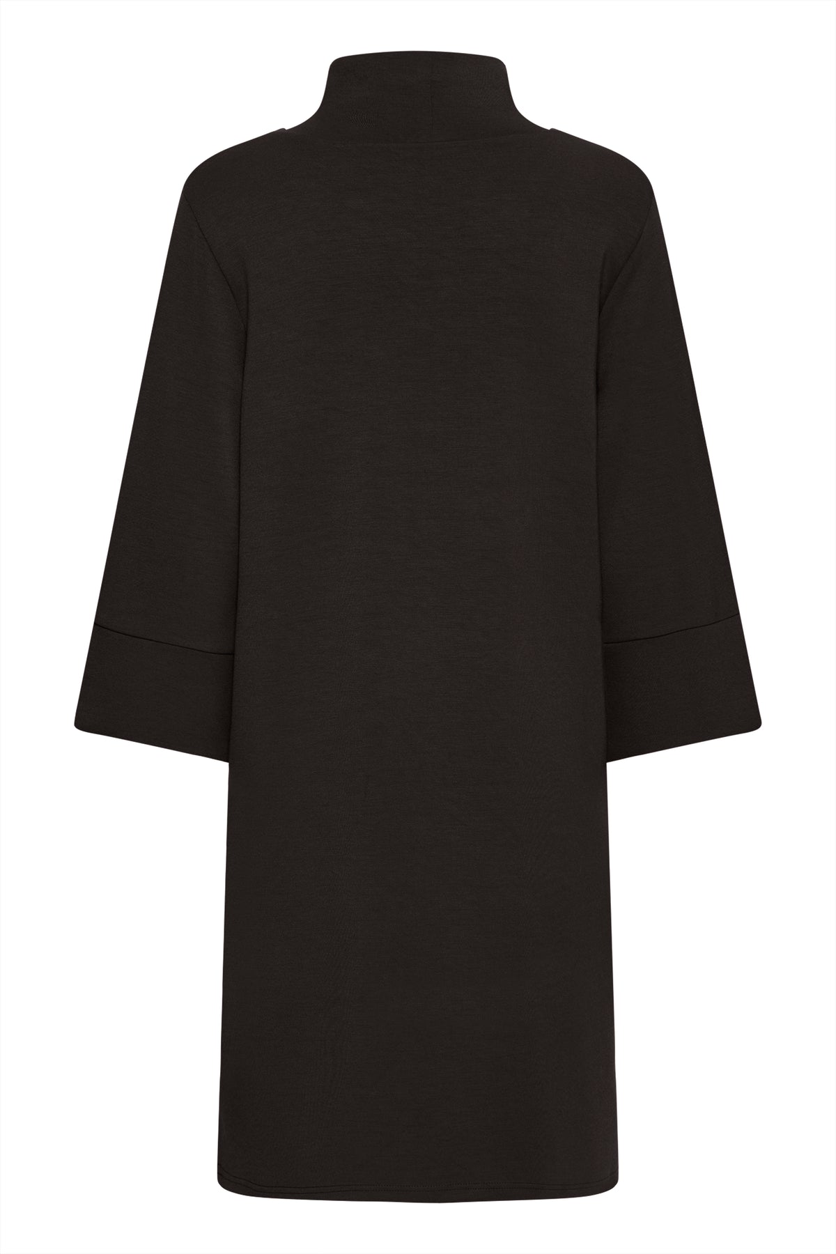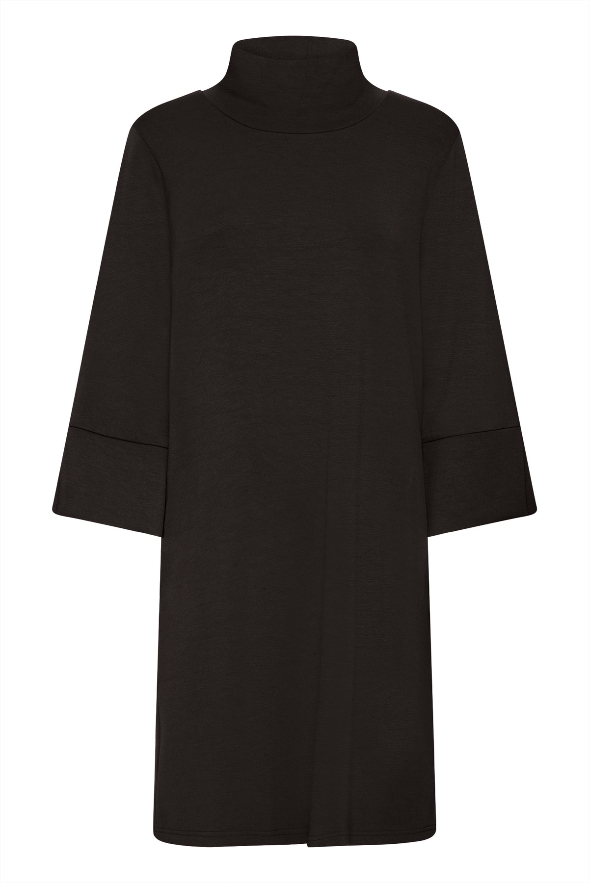 Black super soft sweatshirt dress by Fransa with roll neck, slightly cropped sleeves and a relaxed fit.