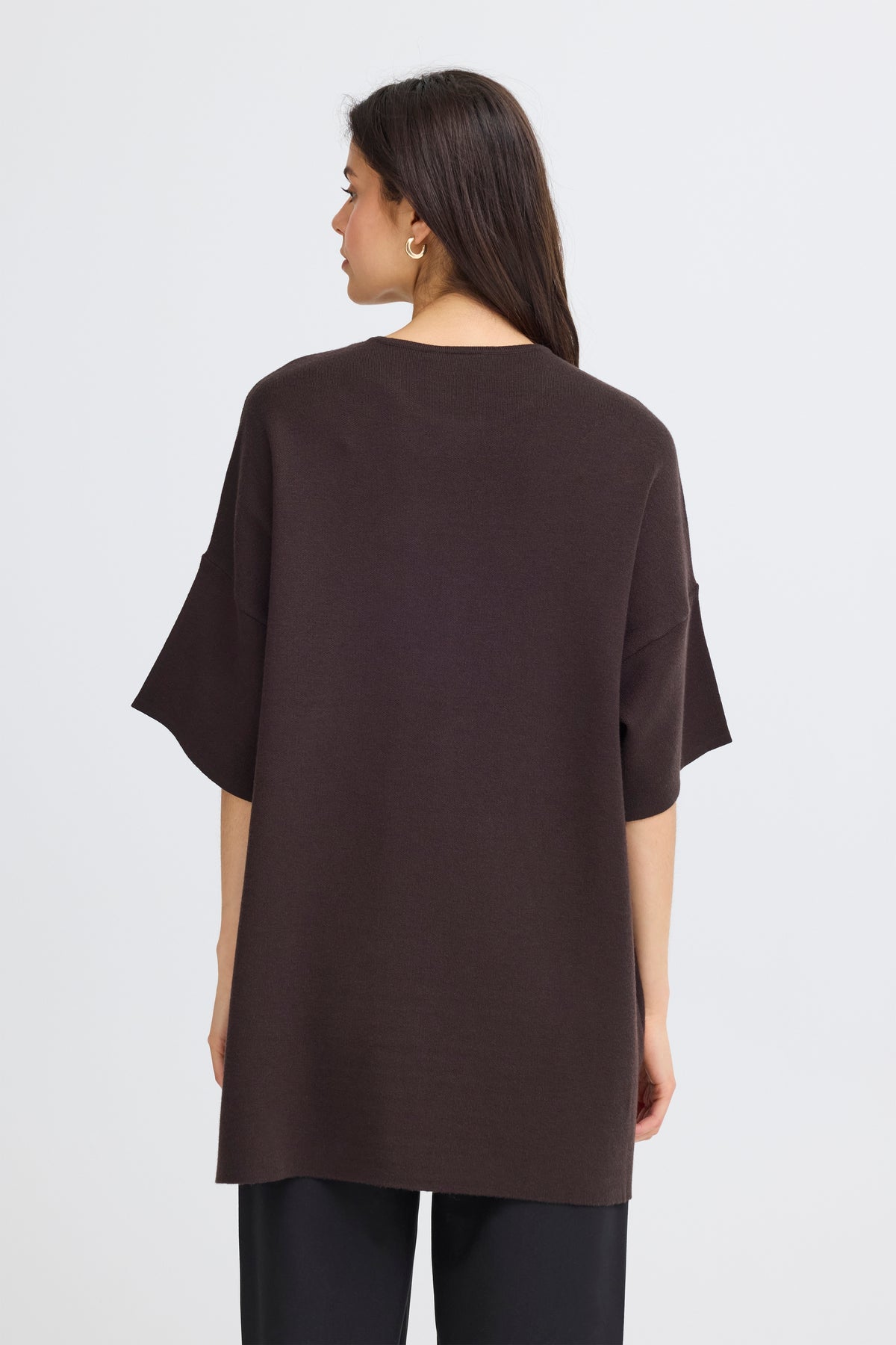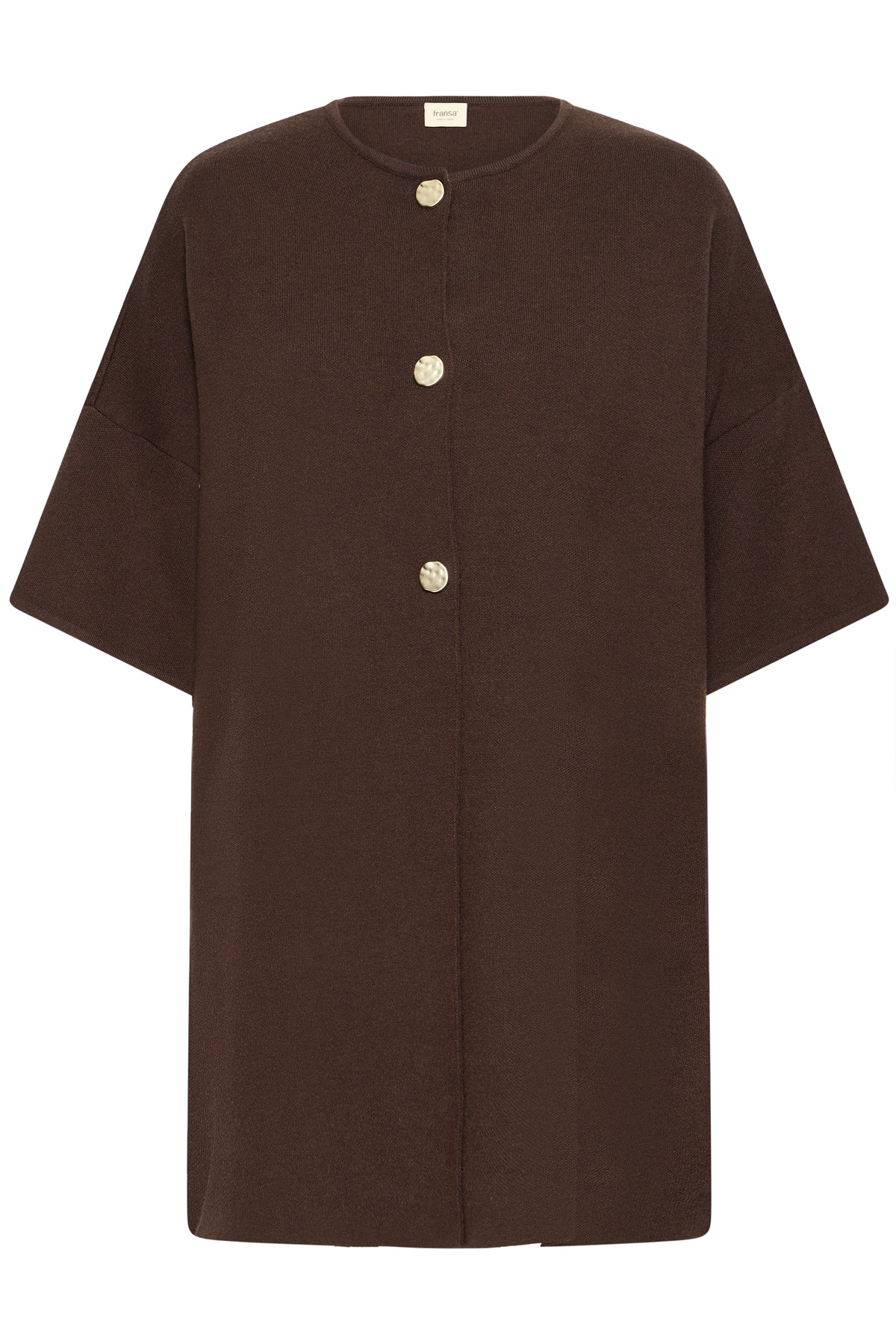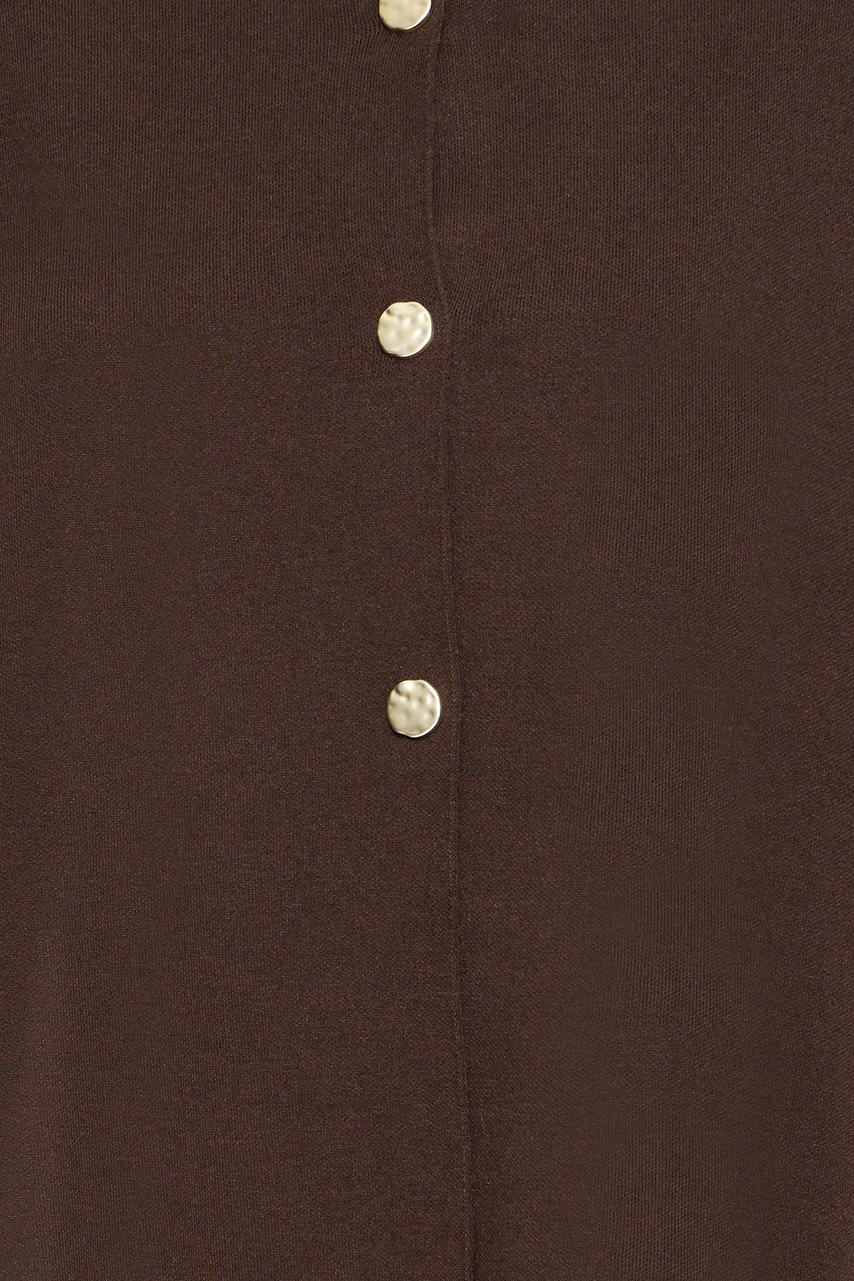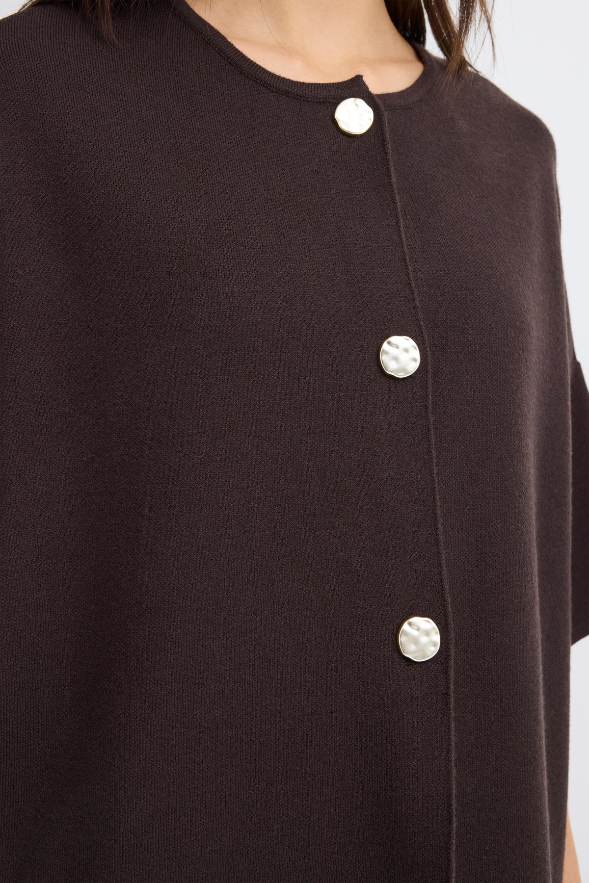 Stunning chocolate brown cardigan with cropped length sleeves and gold button detail.
