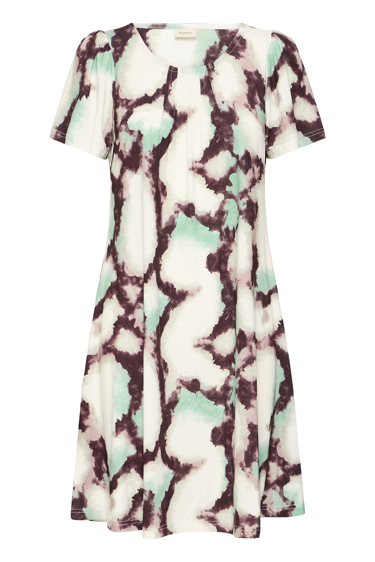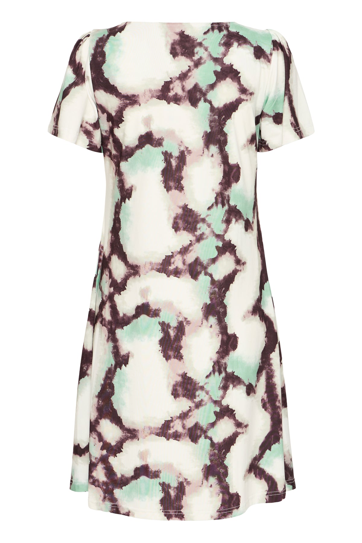Crafted from Fransa's best-selling Seen fabric, this A line dress is stretchy, cool and comfortable. With short sleeves, a rounded neckline with pleating detail and green and black watercolour print, it's a perfect choice to dress up or down this season.