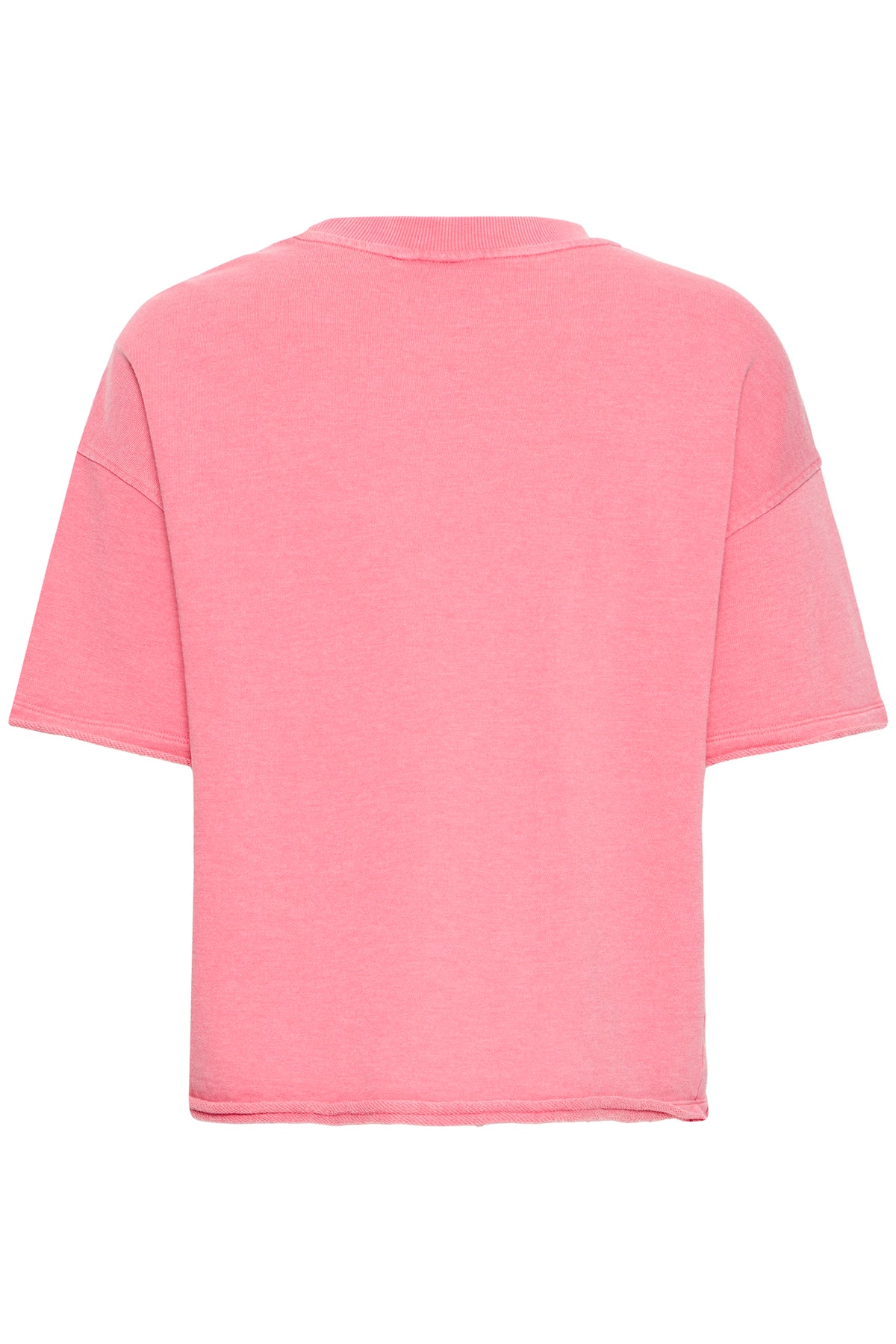 Washed pink short sleeved top by Fransa with rounded neckline.