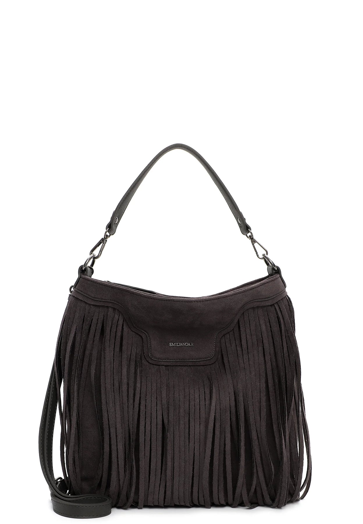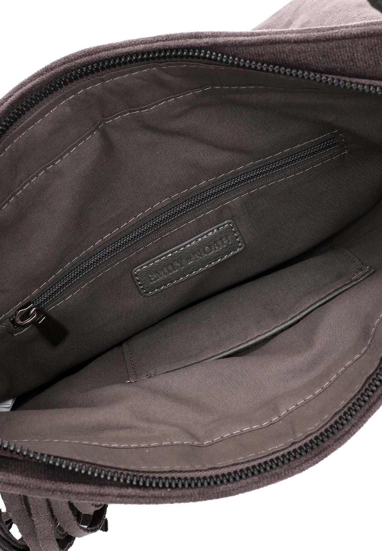 Crafted from soft vegan suede, this elegant bag features eye-catching fringe detailing and subtle Emily & Noah branding for a modern boho touch. Designed with practicality in mind, it includes a full zip closure for secure storage, an interior zip pocket, and a slip pocket to keep your essentials organised. Carry it your way with a detachable shoulder strap and a versatile crossbody strap—perfect for everyday wear or weekend outings.